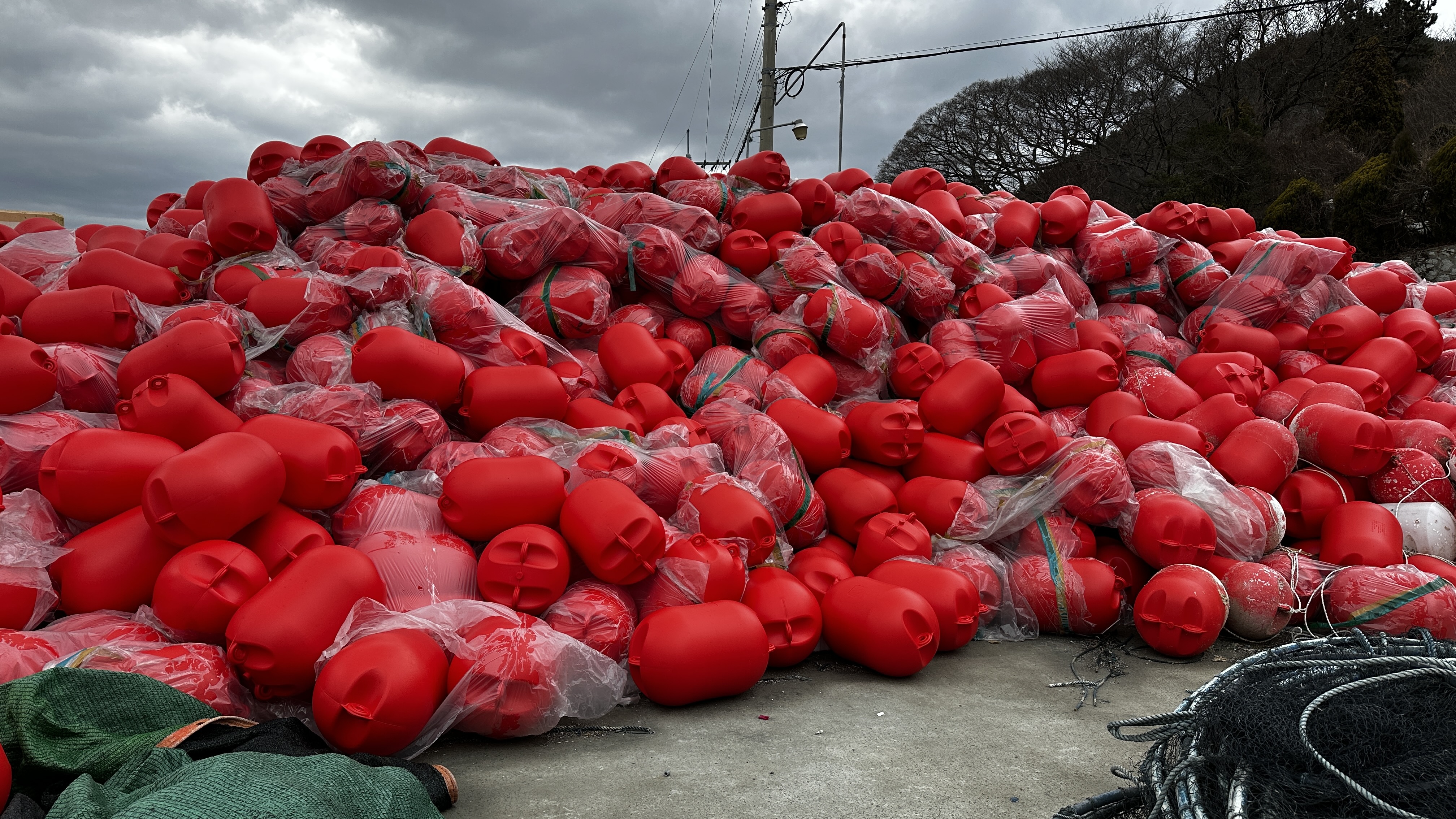 양식장이 꽤 큰 모양이다. 부표들이 산더미같이 쌓여 있다.