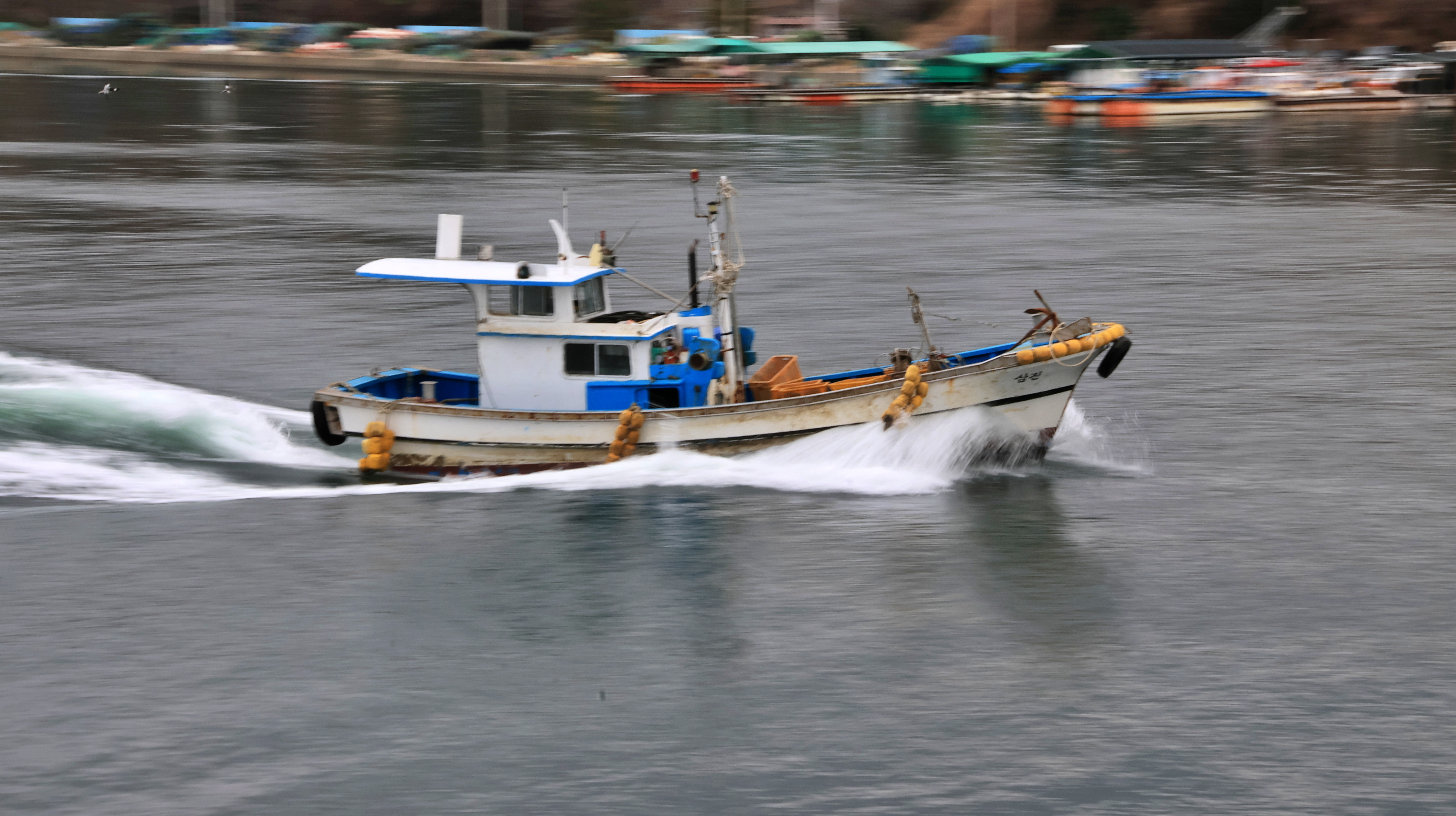 셔터 속도 1/30초로 설정하고 배를 따라 가면서 연속 셔터를 눌러 얻은 사진이다.