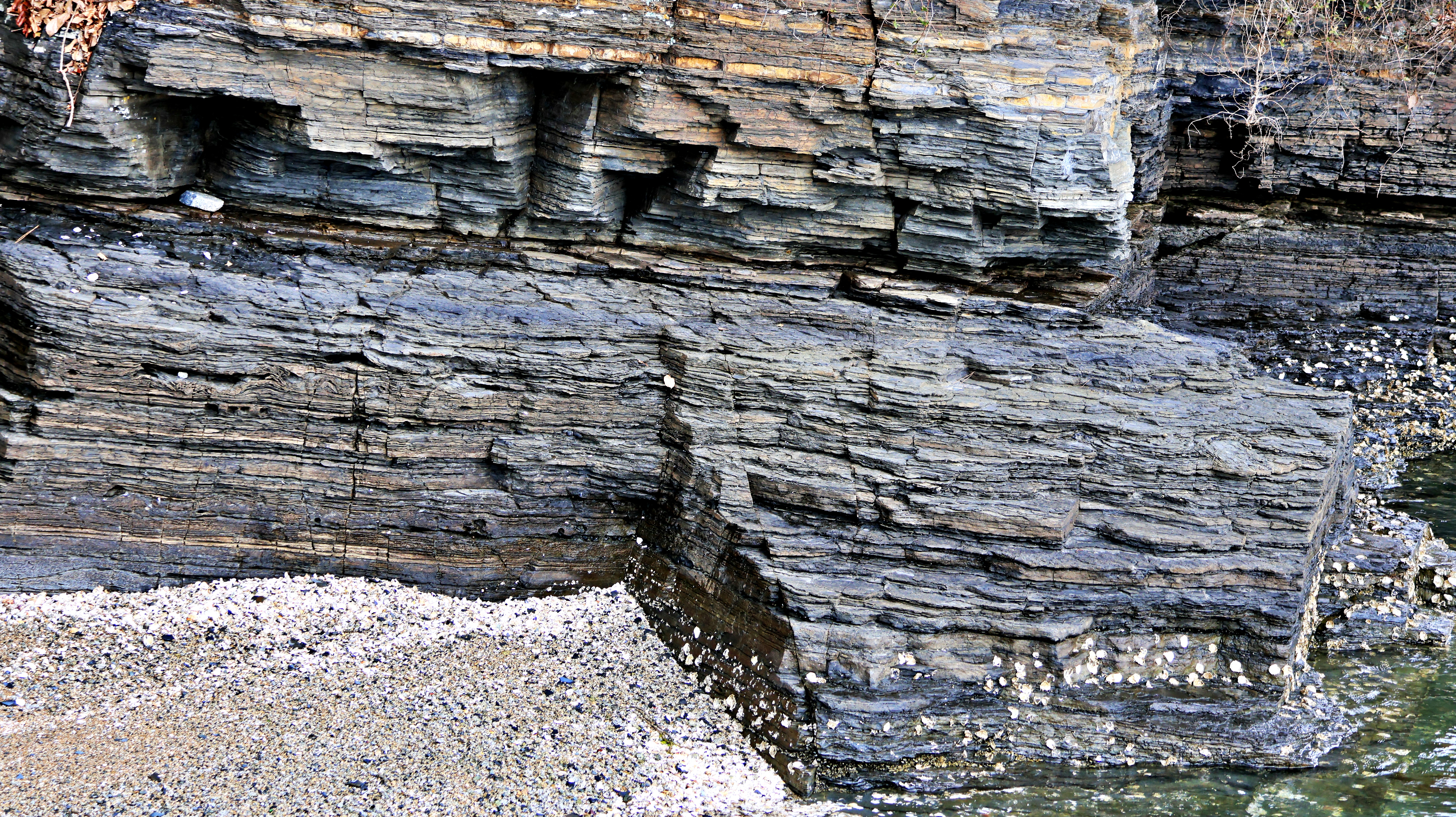 이 땅의 역사를 짐작케해주는 퇴적암. 켜켜이 흙이 쌓이고 그것이 굳어 돌이 되는 과정은 억만 년의 시간이 걸렸을 것이다.