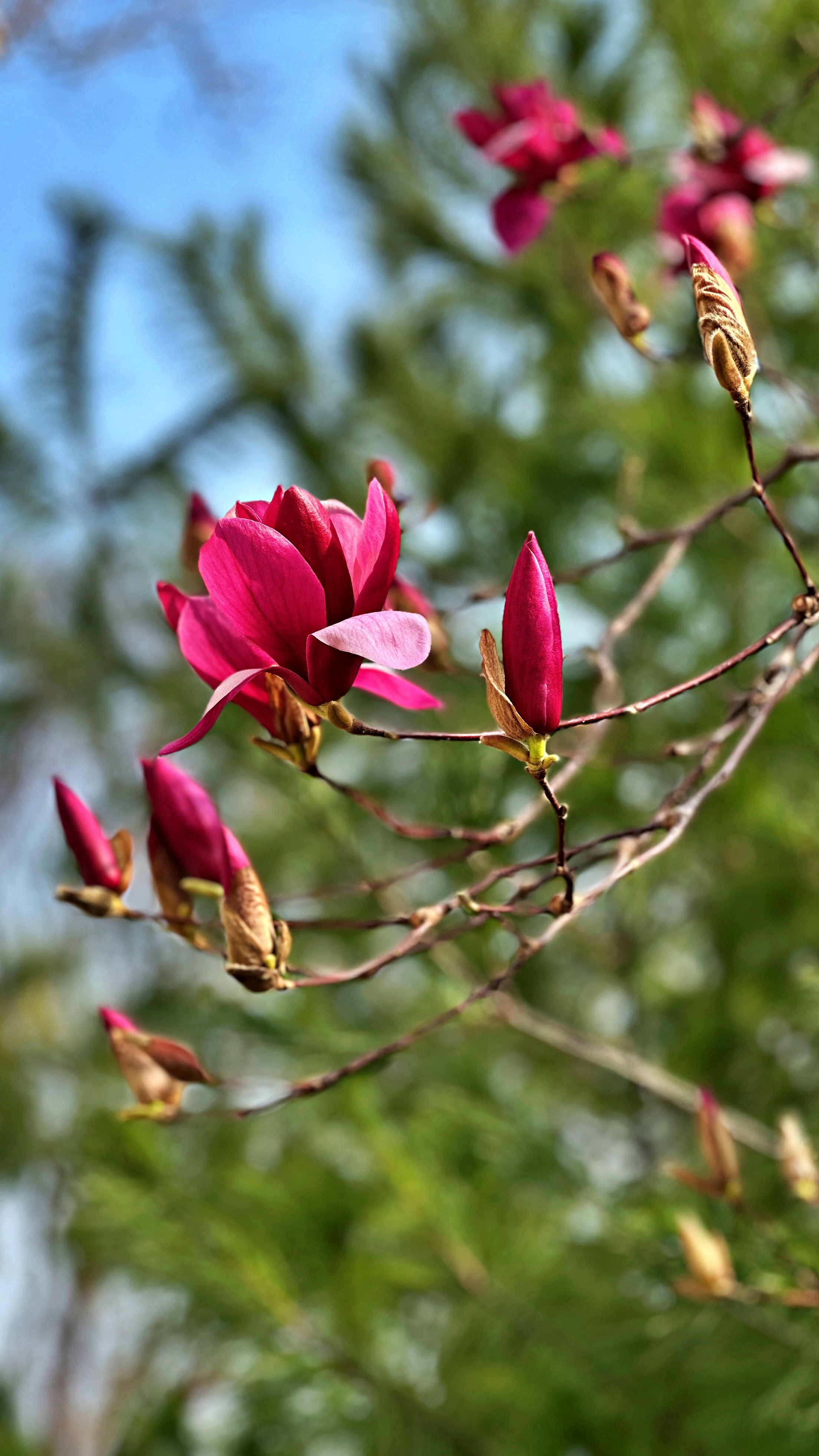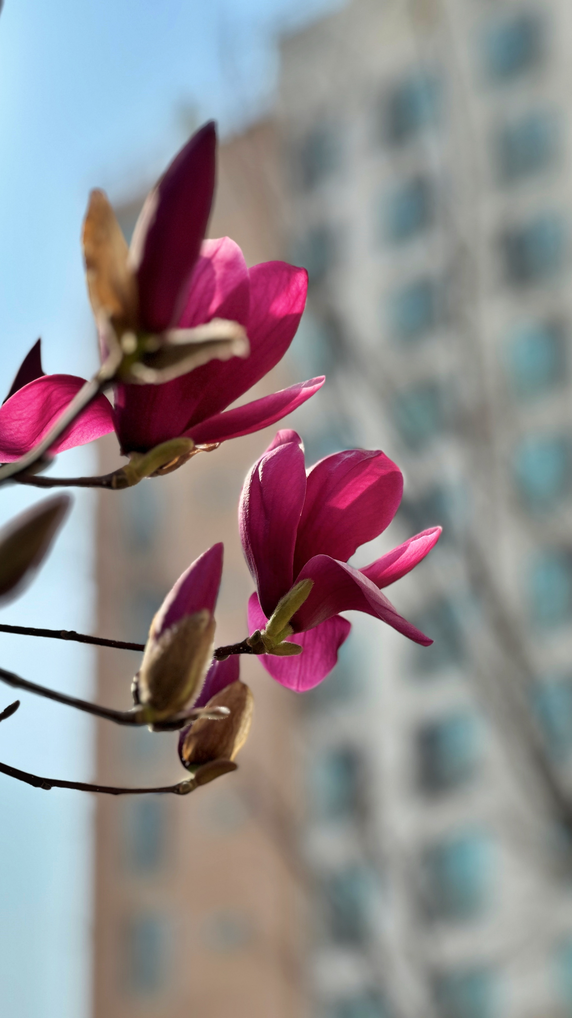 화려한 보라색 때문인지 백목련에 비해 꽃이 더 단단하고, 옹골차게 보인다.