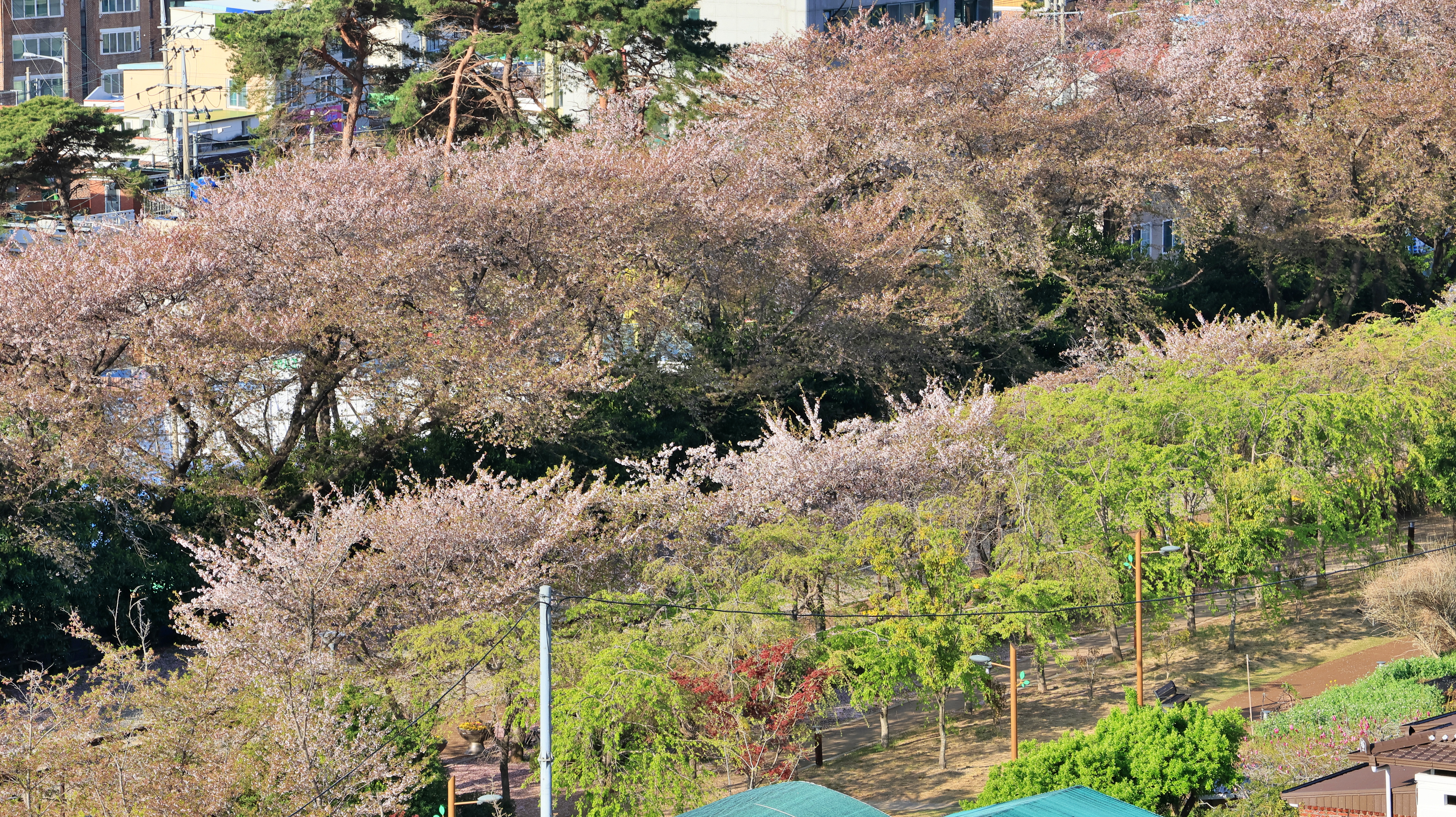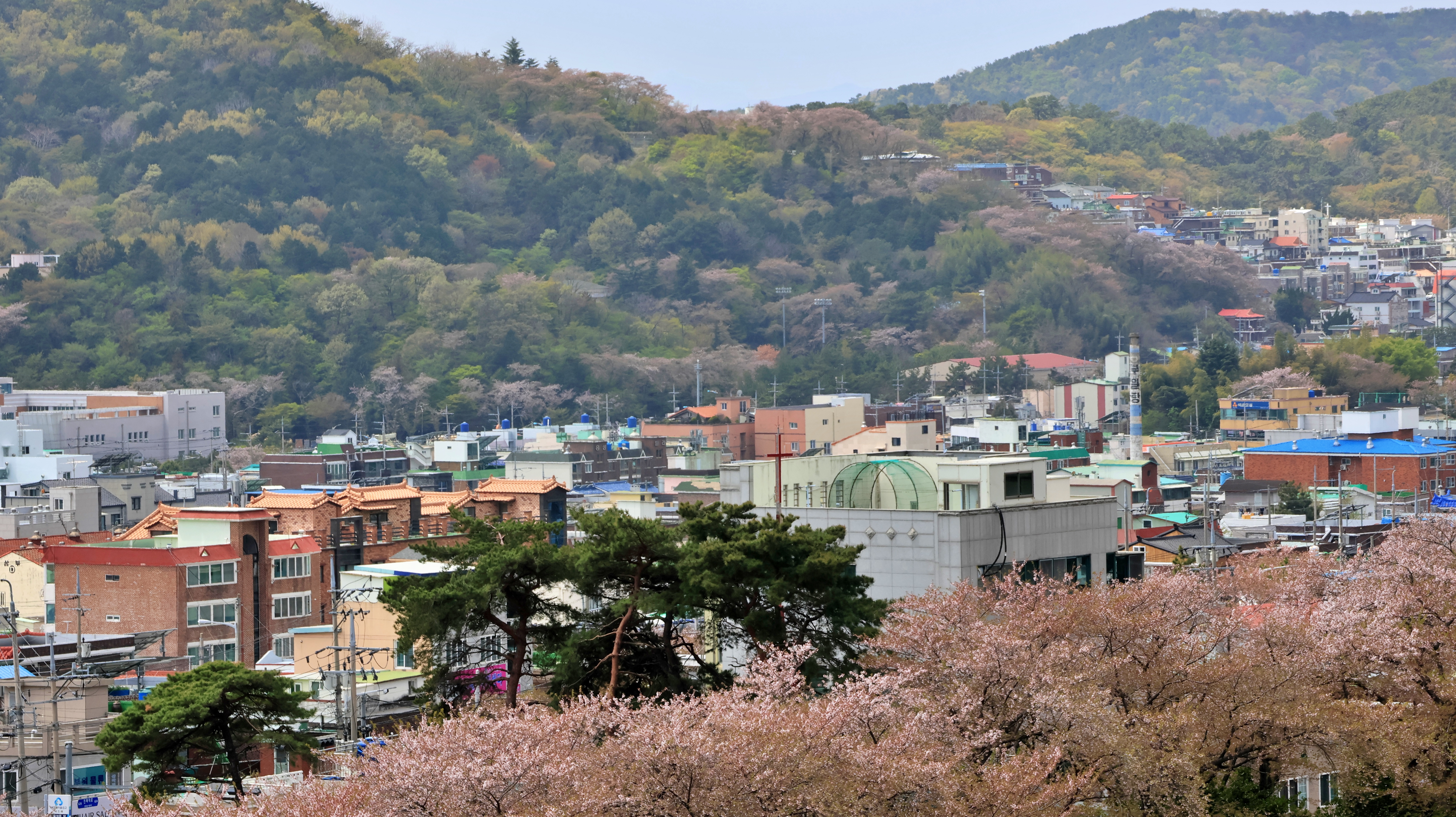 벚꽃은 산자락에서만 더문더문 보인다.