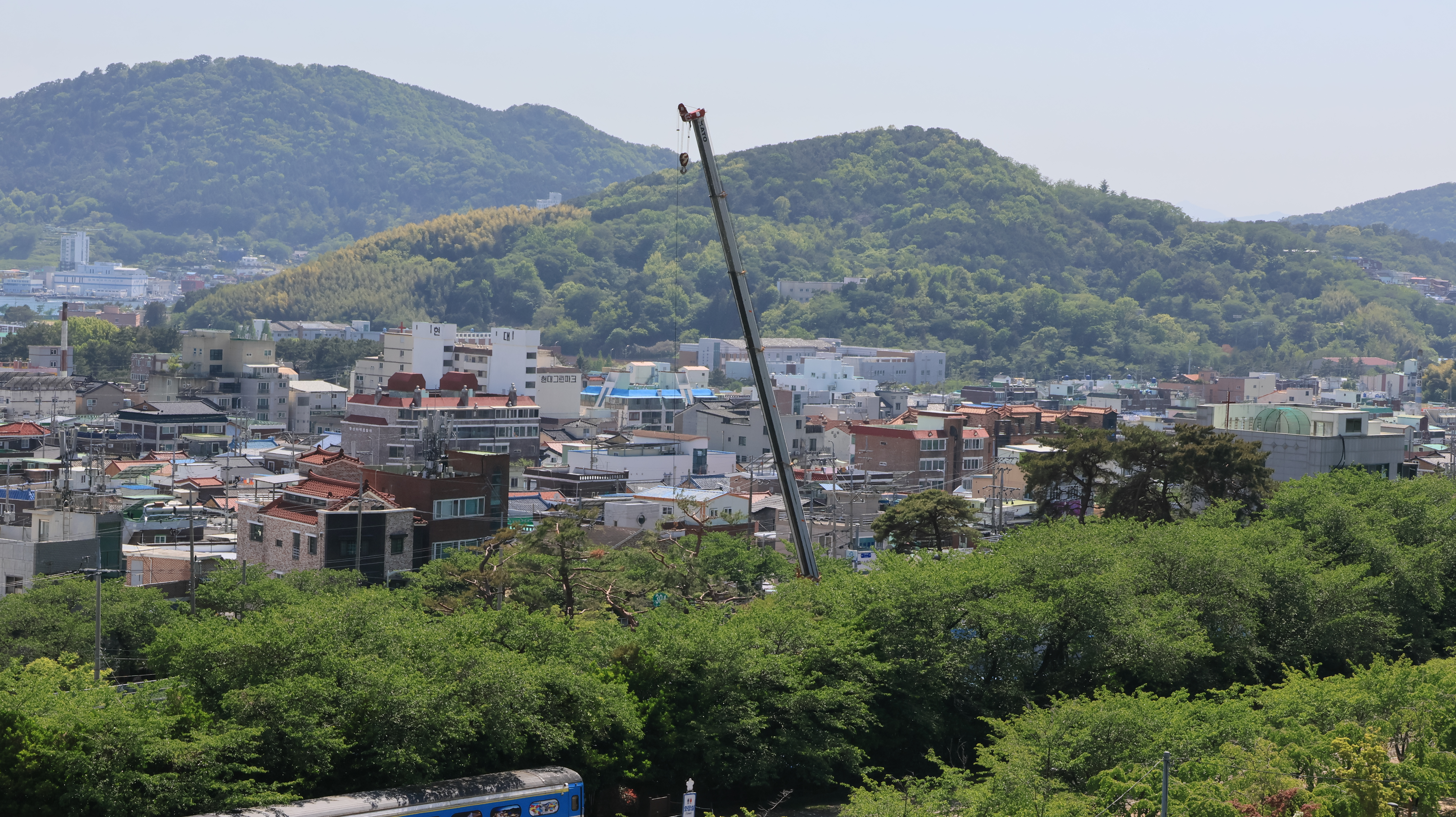 경화역 공원에는 저 키 높은 크레인이 고개를 저어댄 지가 한 달을 넘기고 있다. 몇 달 후면 벚꽃나무 너머저 크레인 있는 자리에 큰 콘크리트 건물이 들어설 모양이다. 작년인가 재작년에 니캉내캉 뭐라고 하는 걸 짓겠다고 경화역공원 서쪽 입구 쪽에 현수막이 걸렸었는데 그 옆에 공원을 원상태로 보존해야 한다는 주민들의 반대 현수막이 걸리고 하는 좀 어수선한 시기가 있었다. 그리고 한 반 년 이상 잠잠하더니 크레인이 움직이고, 다가치 센터 건립이라는 공사 안내판이 걸렸다. 자리를 옮겨 이용도가 낮았던 발 지압장을 걷어내고 주민센터를 지을 모양이다.