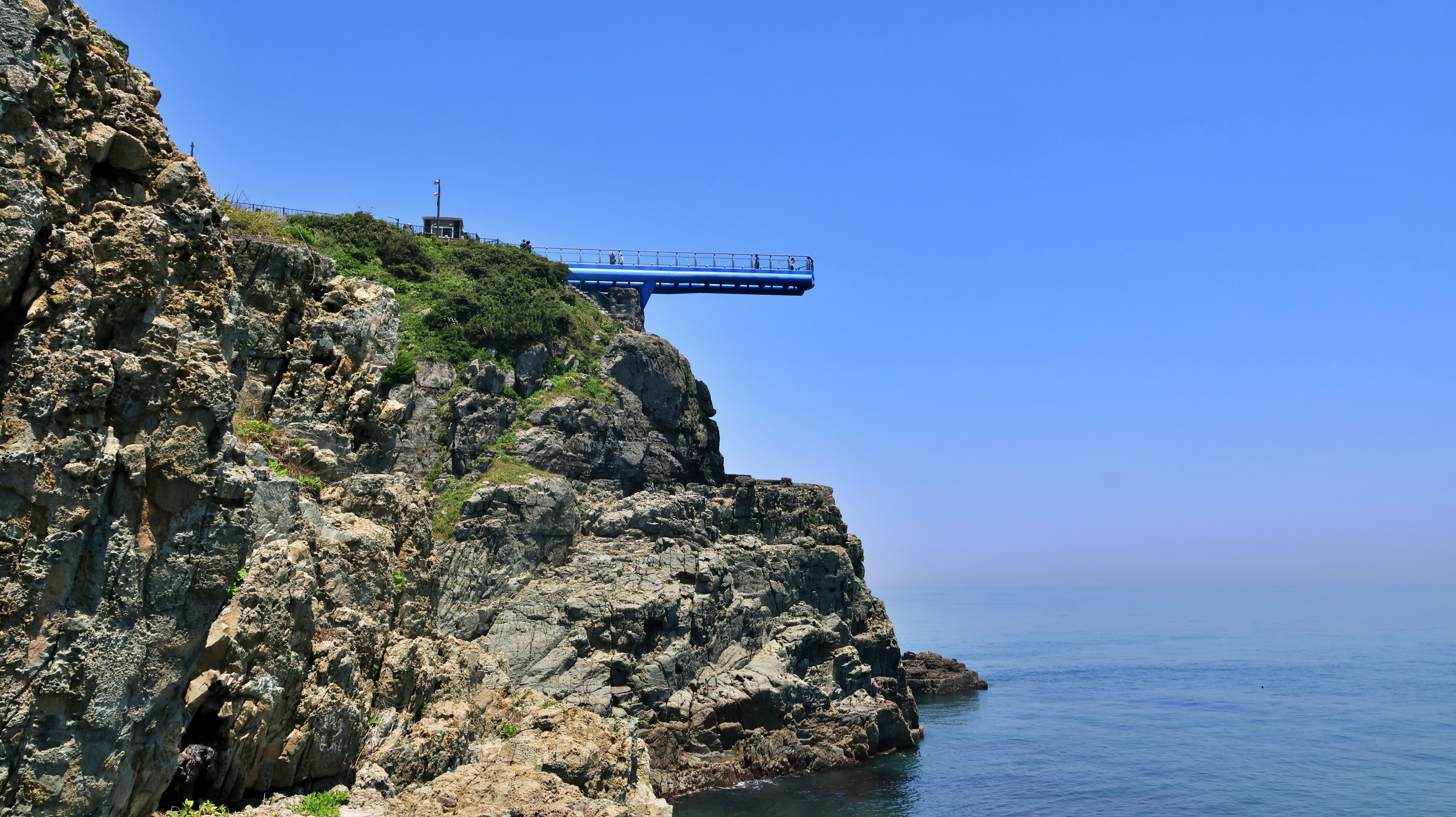절벽 위에 팔을 뻗듯 나와 있는 오륙도 스카이워크