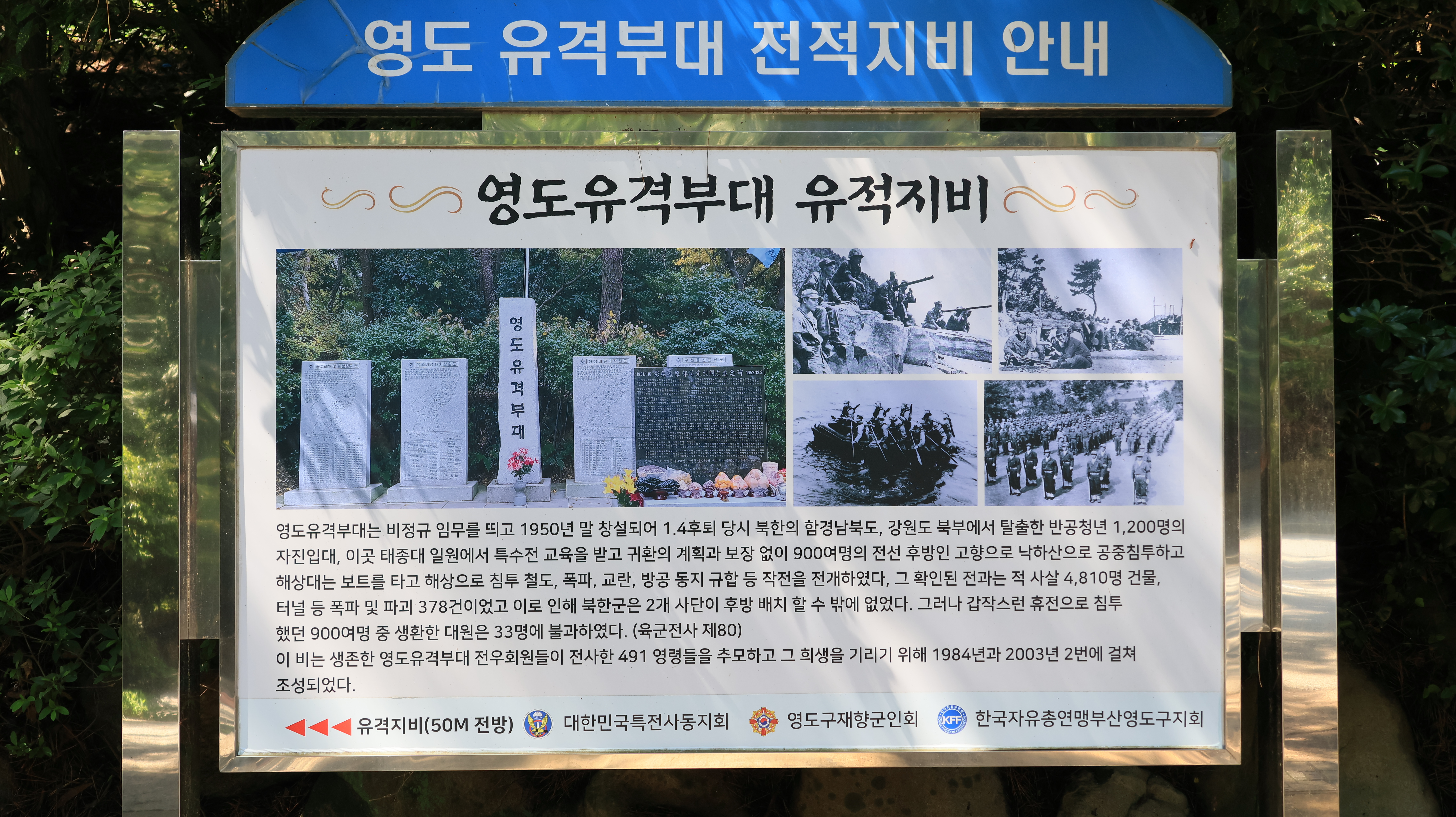 태종사 인근에는 영도 유격부대 전적비가 있었다. 이북 출신인 반공청년단이 주축이 된 유격부대라는 안내문이 있었다.