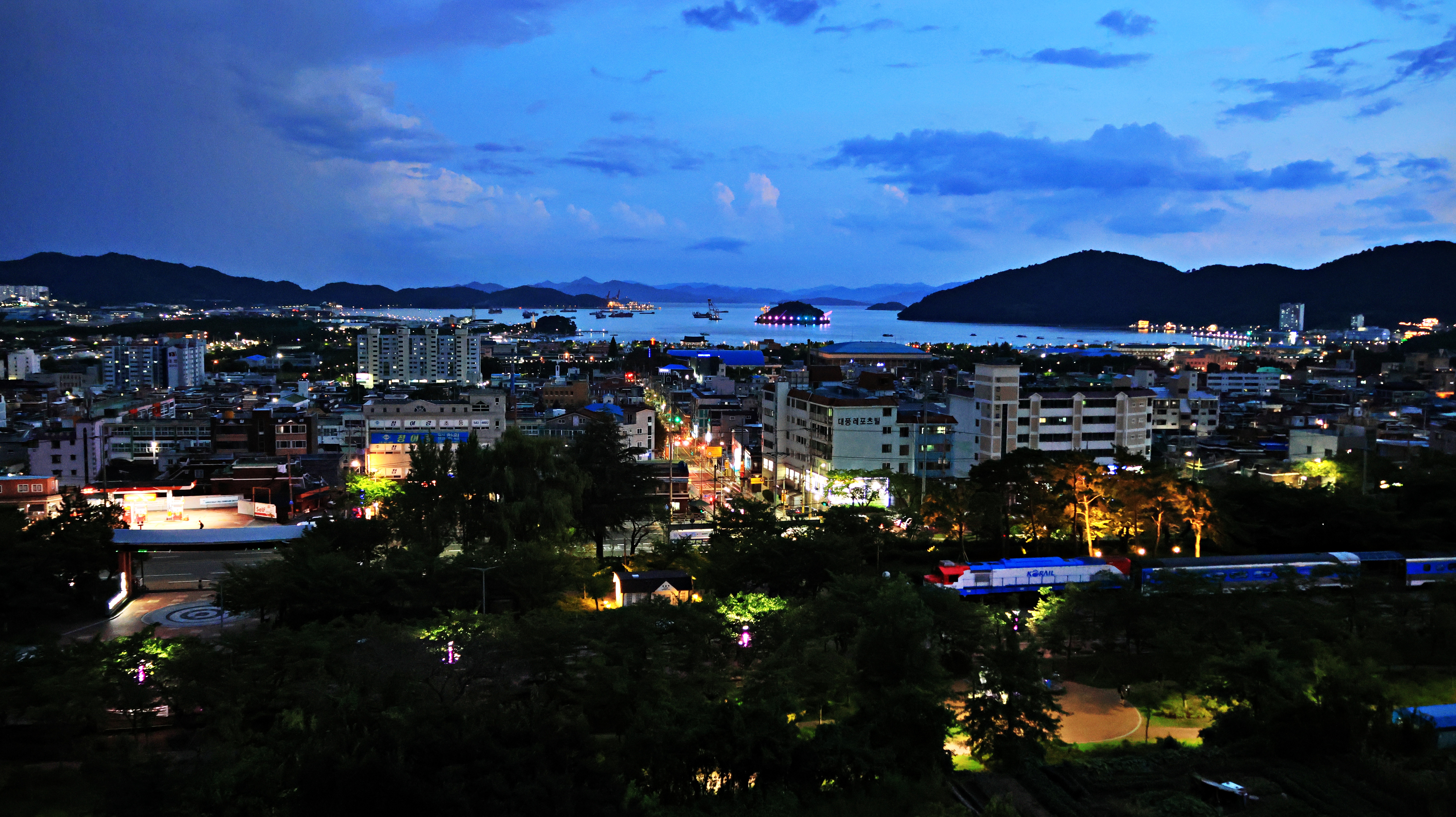 시야가 맑다. 불빛이 씻은 듯 깨끗하고, 멀리 거제도 앞산 뒷산의 산자락이 뚜렷하게 보인다.
