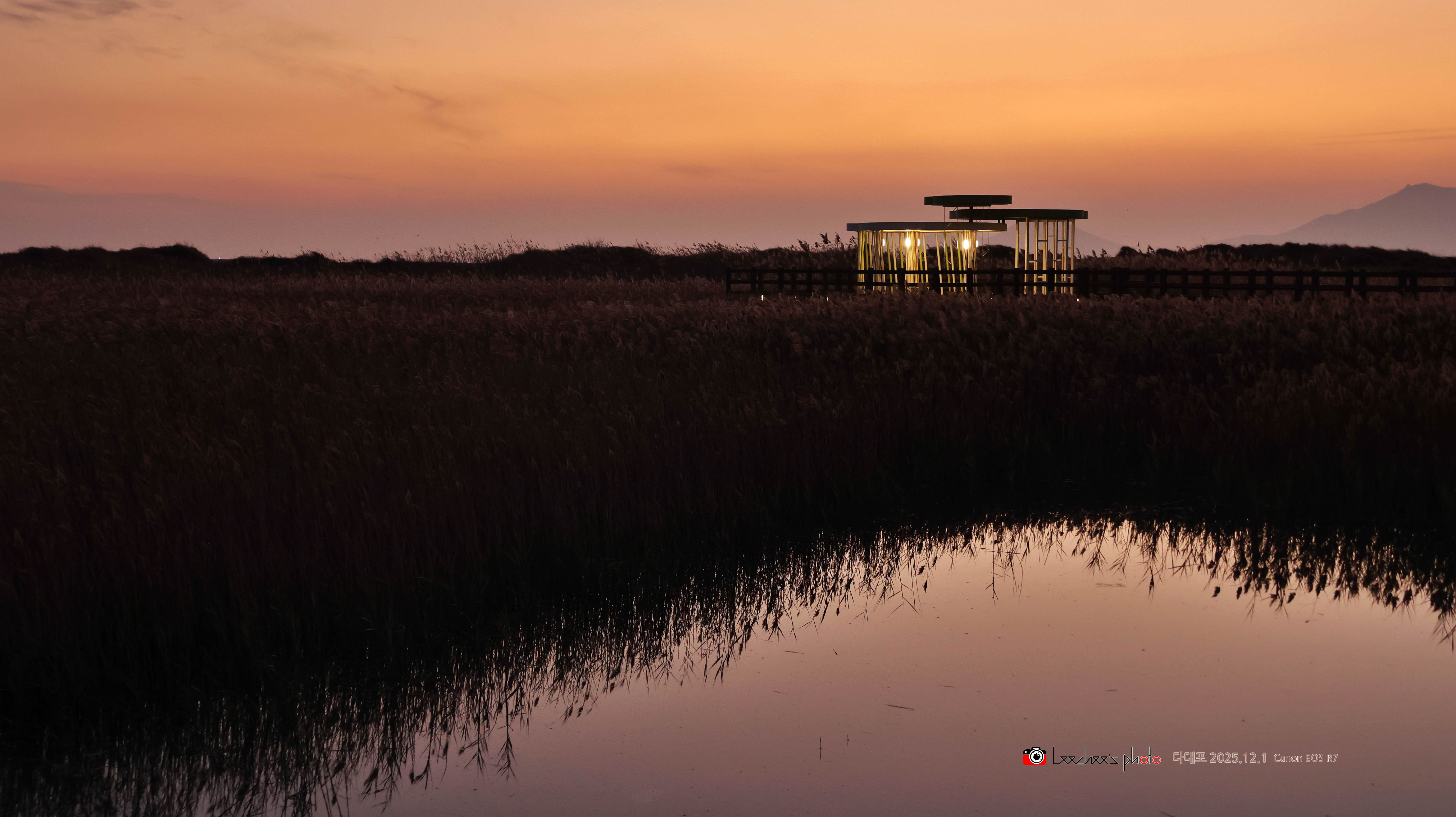 해가 넘어가고 노을이 사라질 때 쯤이면 산책로 주변과 쉼터의 전등이 켜져 노을의 아름다움을 대신한다.
