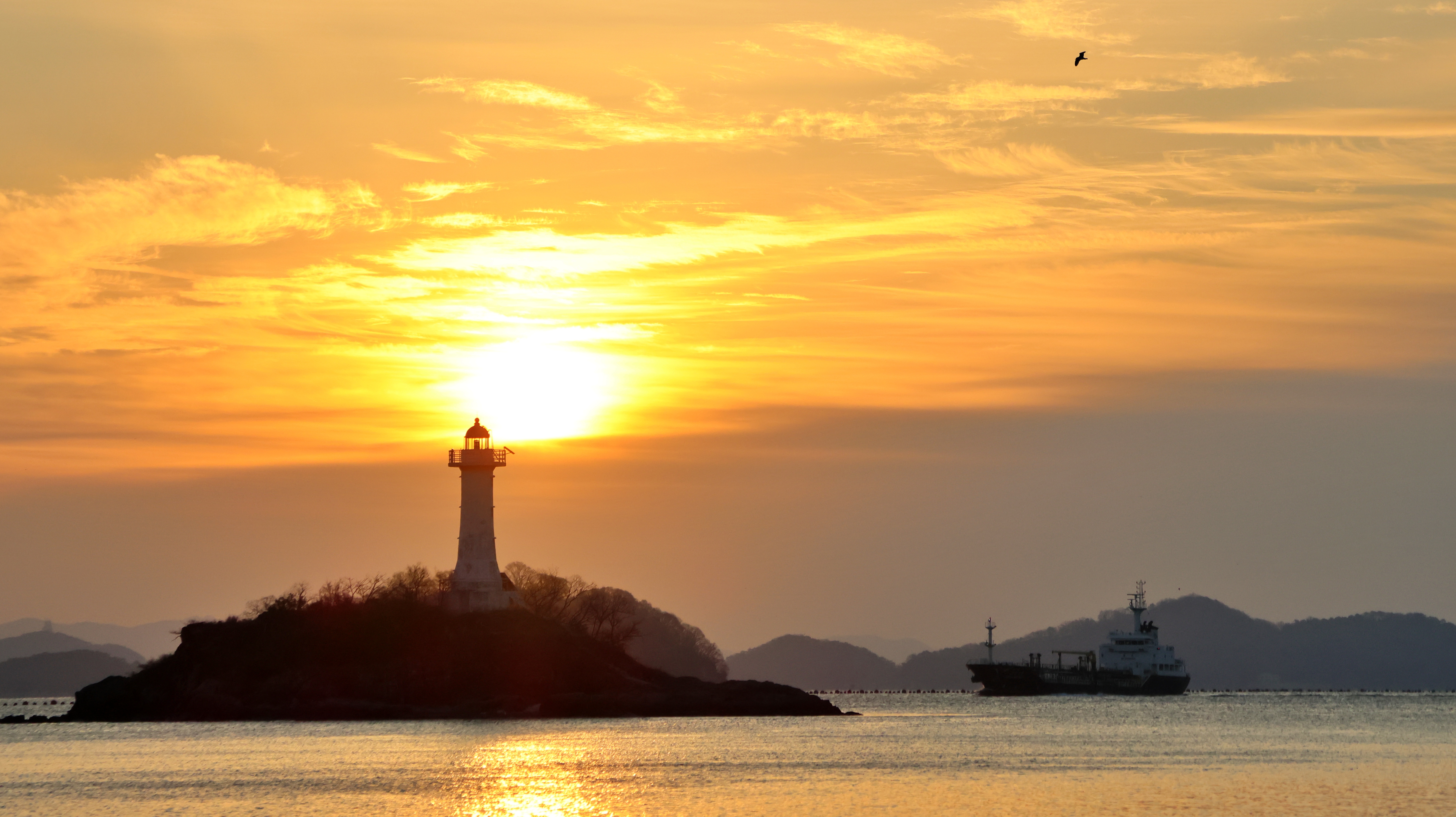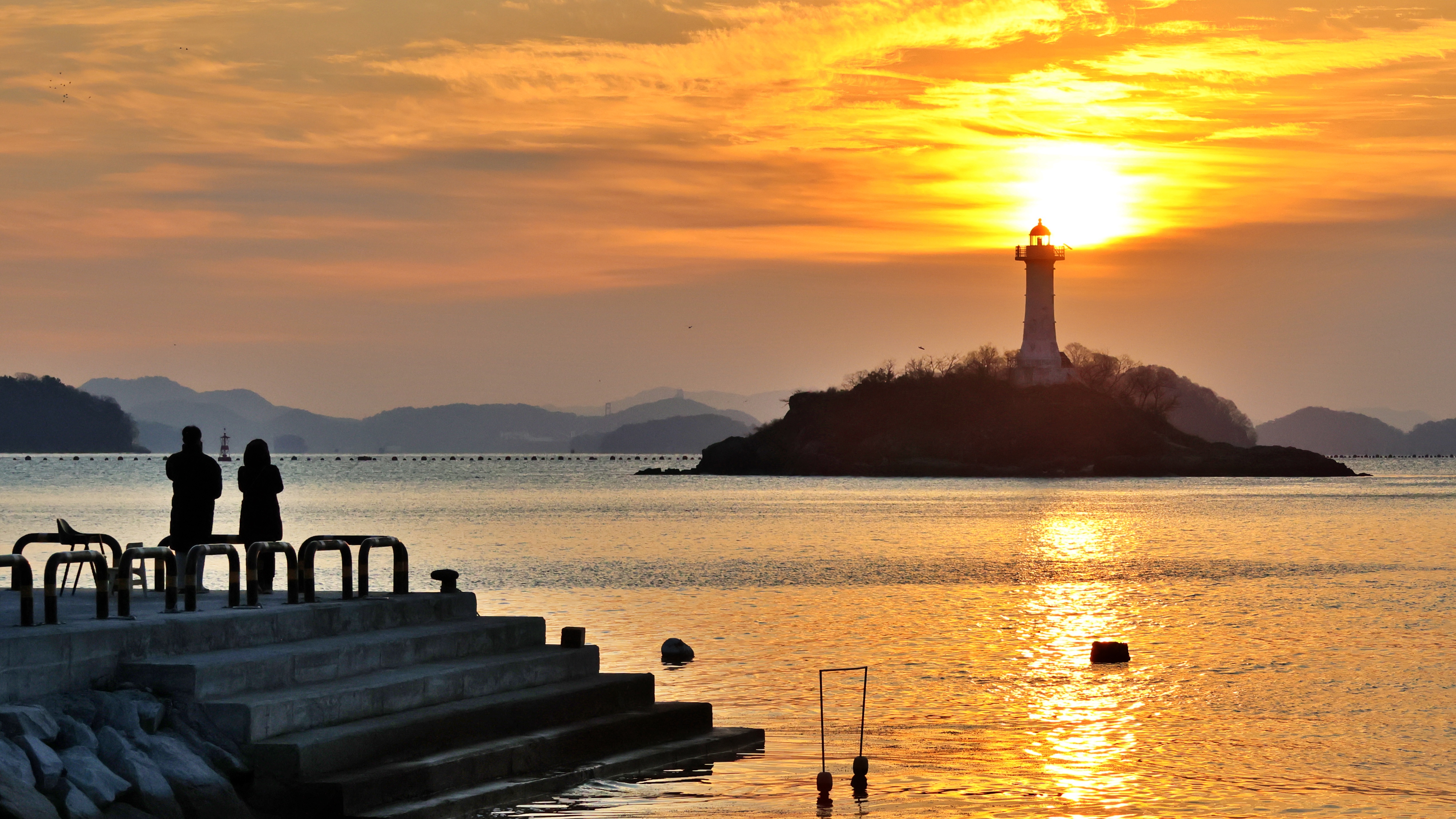 사궁두미 일출 사진의 진가는 둥근 해를 저 등대에 포개거나 머리에 이게 했을 때 나타난다.