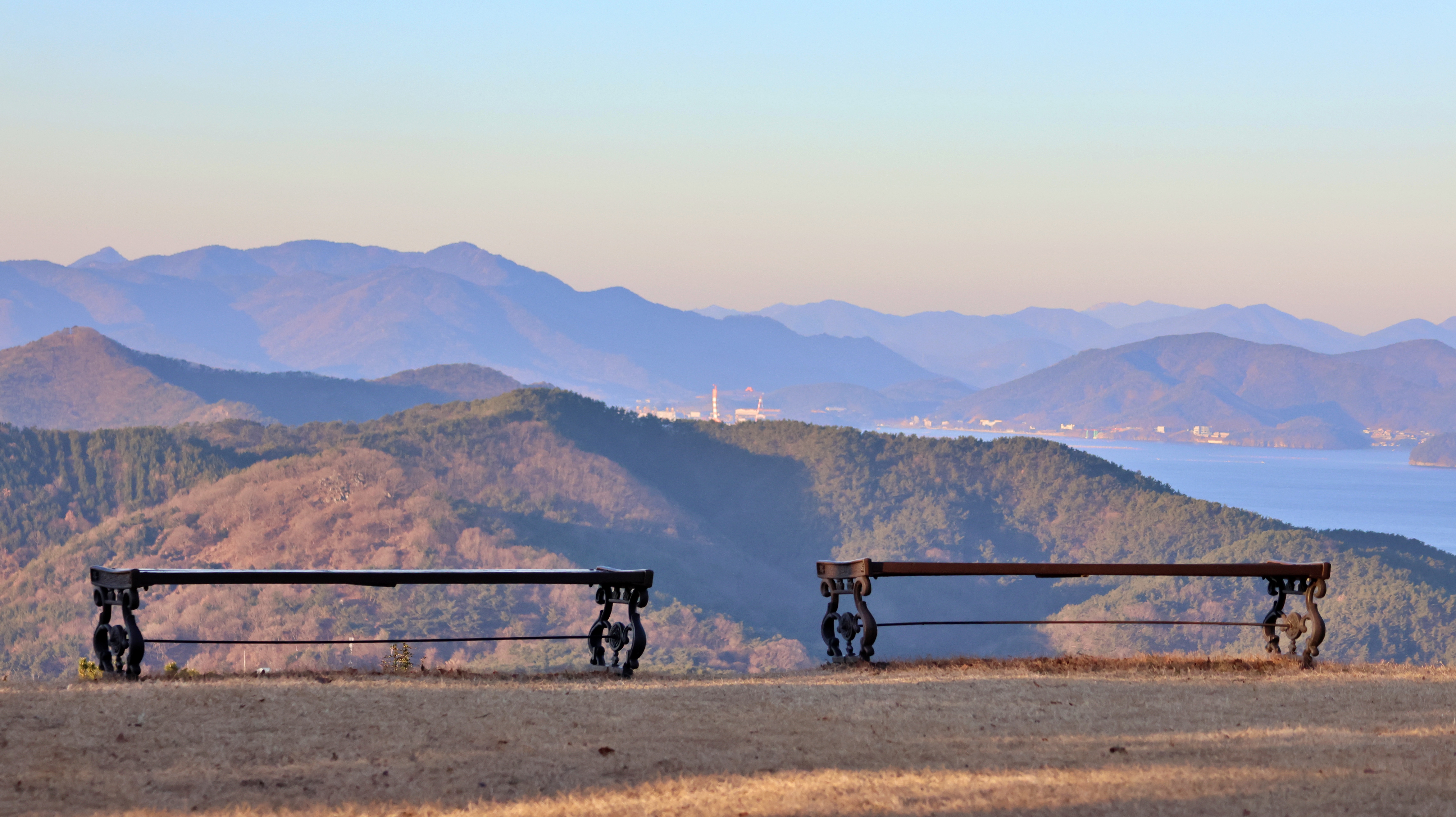 잔디밭 끝에 서면 로봇랜드와 거제 삼성중공업 조선소, 고성 동해면까지 한눈에 들어오기도 한다. 해가 질 무렵이면 아름다운 풍광이 될 거라는 생각이 든다.