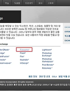command1 4.3. 명령 사용하기 제4장 파이어웍스의 완성4.3. 명령(Command) 사용하기 4.3.1. 익스텐션(Extention) 설치 익스텐션이란 말 그대로 확장 기능으로 파이어웍스를 비롯한 어도비의 제품군의 기능을 쉽게 또는 구현하기 복잡한 기능을 간편하게 구현해주는 프로그램들입니다. 이 프로그램들을 설치하게 되면 각 프로그램의 [명령] 메뉴에 추가되게 되고, 실행은 [명령] 메뉴나 [속성]창을 통해 할 수 있게 됩니다. 1) 익스텐션을 다운로드하려면, 한국어도비 사이트의 익스체인지 페이지에 접속합니다. http://www.adobe.com/kr/exchange/ 클릭하면 영문 다운로드 페이지로 이동합니다. 2) 만약에 어도비 사이트에 로그인을 요구합니다. 사용자 계정이 없다면 가입하여 계정을 만들어야 합니다. 사인인(Sign.. 2015. 8. 21. 이전 1 다음